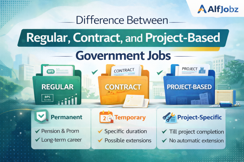 Government jobs in Pakistan are often considered stable and secure career options. However, not all public sector positions are the same. When reviewing job advertisements, candidates frequently encounter different employment types such as regular, contract, and project-based jobs. Understanding these categories is important before applying because each type offers different benefits, job security, and career progression opportunities.