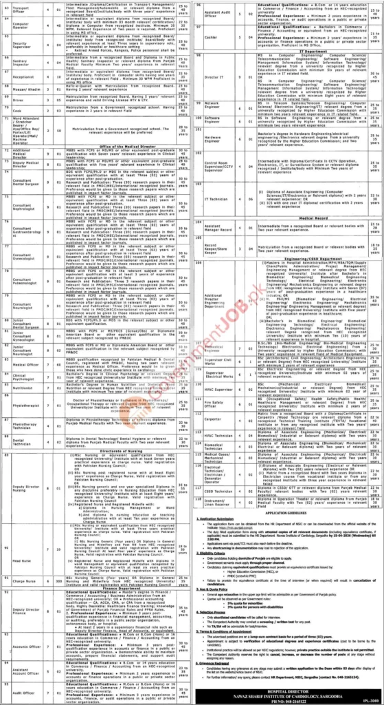 📍 Submission Address: HR Department, Nawaz Sharif Institute of Cardiology, Sargodha, Punjab