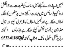 A residential school in Quetta has announced new teaching job opportunities for 2026. These vacancies are published in the daily Jang newspaper dated April 18, 2026, and are open for candidates who want to build a career in the education sector.